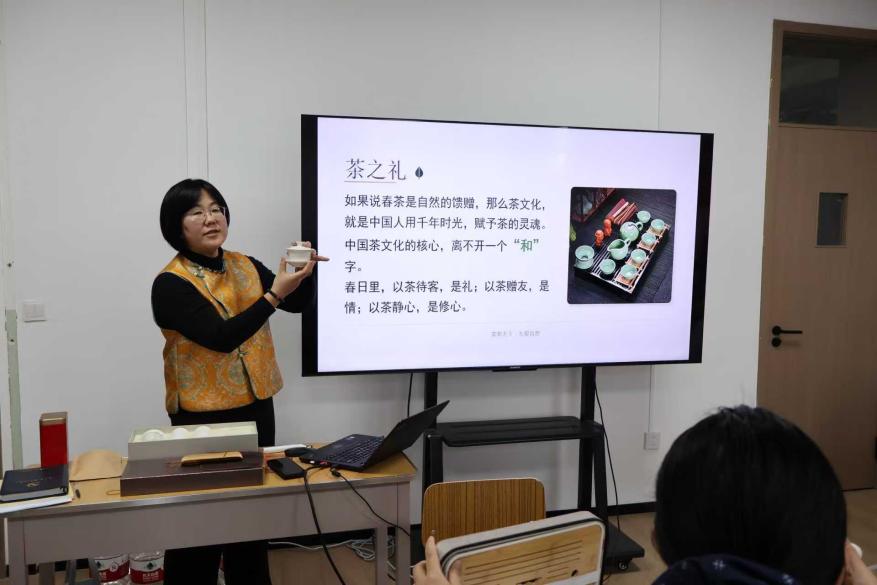 活动现场,中语学院茶艺教师娓娓道来中国茶文化的深厚底蕴,细致讲解中式茶具的使用之道,并现场演示温杯、冲泡、分茶等茶艺流程,一招一式尽显雅致。参与教师亲手体验泡茶之趣,分组实践、共品香茗,在氤氲茶香中沉浸式感受中华优秀传统文化的独特韵味,也在交流互动中拉近了彼此距离。